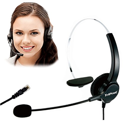 TRIPROC 4-Pin RJ9 Hands-free Call Center Corded Monaural Telephone Headset with Noise Cancelling Microphone and Adapter Compatible with Plantronic,Avaya,Grandstream,Aastra,Jabra