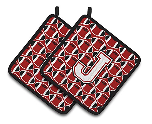Caroline's Treasures Letter J Football Cardinal & White Pair of Pot Holders CJ1082-JPTHD, 7.5HX7.5W, Multicolor