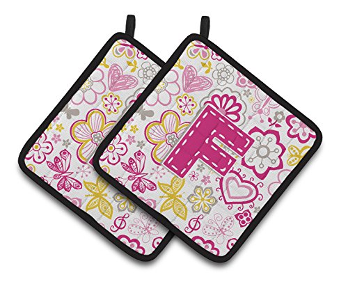 Caroline's Treasures Letter F Flowers & Butterflies pink Pair of Pot Holders CJ2005-FPTHD, 7.5HX7.5W, Multicolor