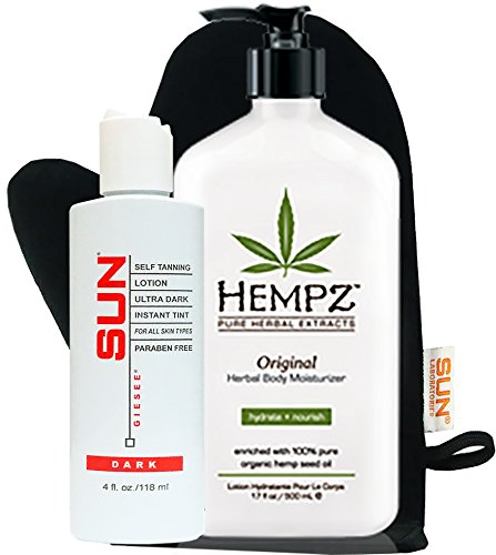 Hempz Original Herbal Body Moisturizer, 17 Fluid Ounce+ Dark Self Tanner 4 oz + Lotion Applicator