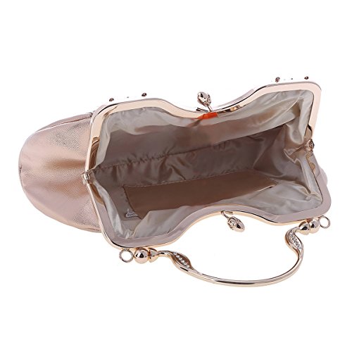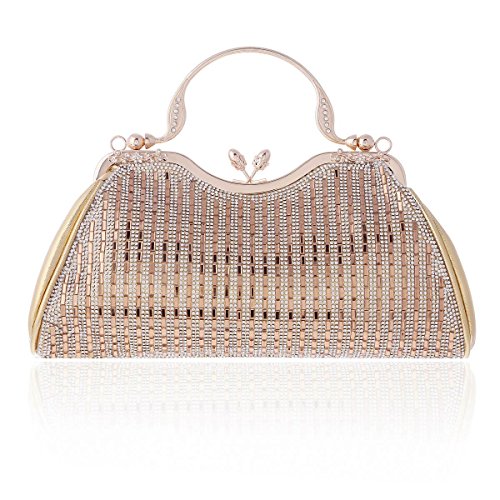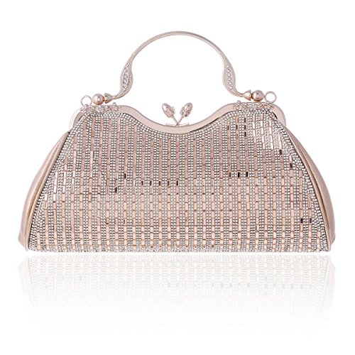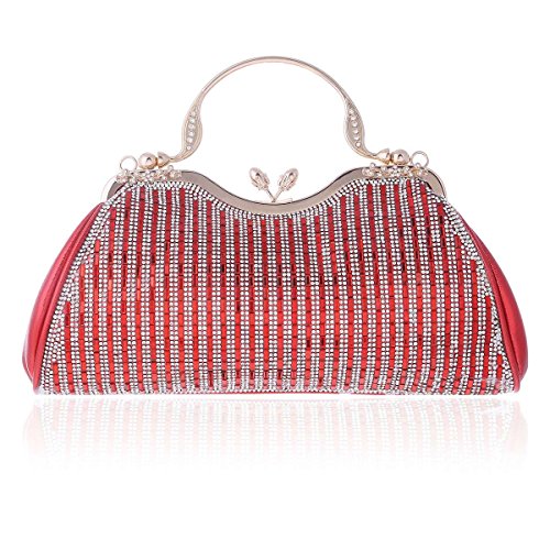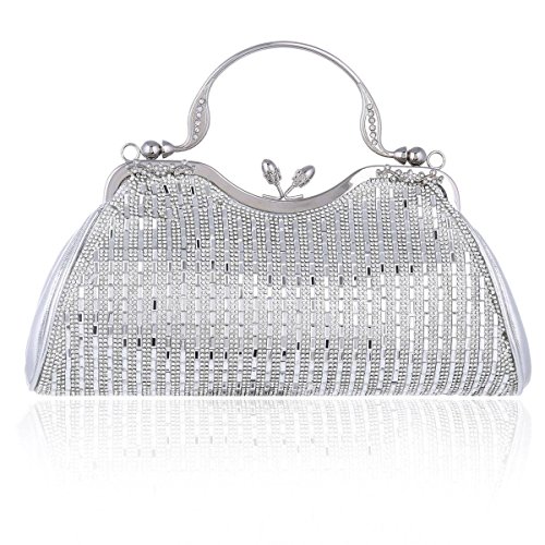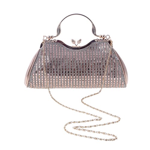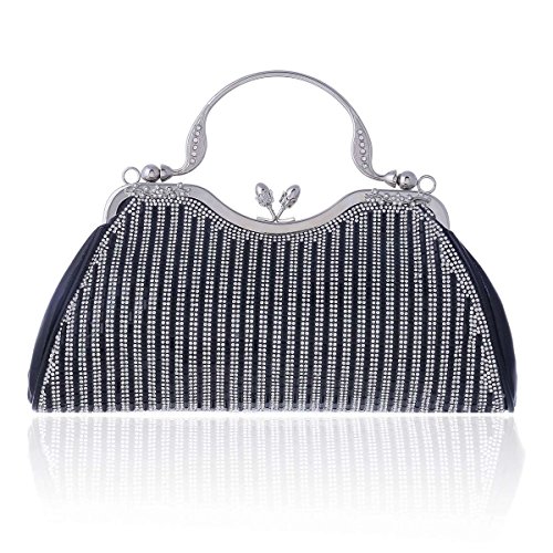 Product Description An evening clutch meets your need in all occasion. Made from PU leather,top kiss lock closure detail.This evening bag sparking rhinestones front design,fit for weddings, parties, proms or the cocktail,also can used as daily shoulder bag.1 main pocket for key,cell phone( easily fit for iphone 6s plus),lipstick .compact mirror or other small things.Equipped with 1 long chain,you can used it as a clutch or shoulder bag. Bag measurement: 28 x 6x 22cm ( 11.02x 2.36 x 8.66inches); Long chain 118cm (46.45inches). 0