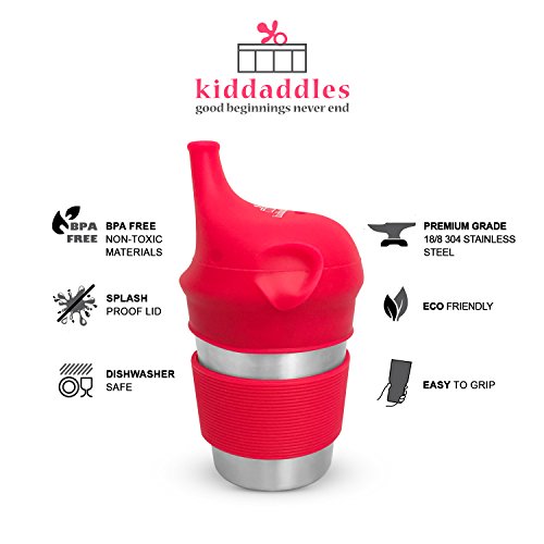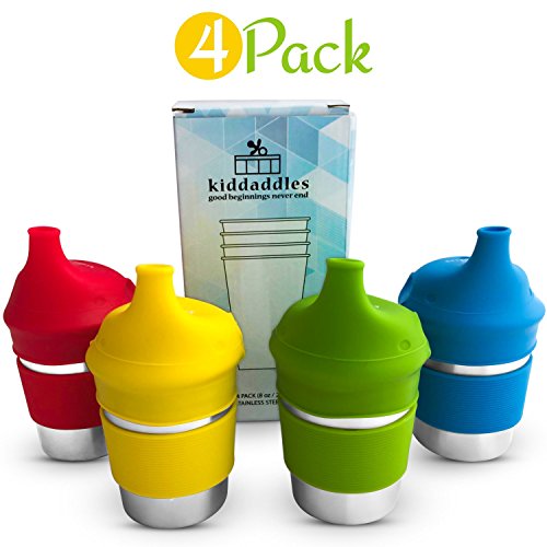 -. Feature : ★ THE BEST TRAINING CUPS TO LEARN DRINKING - Kiddadles sippy cups are specially designed to encourage your baby self-drinking safely without at first stage. The cups have the perfect size for little toddler hands to hold and make the BEST choice to learn how to drink / ★ SIPPY LIDS - The thing that makes our cups special is that they were designed to teach babies how to a bottle and drink it by himself without making a mess. With that in mind, the cups have sippy lids with a spout that your baby can drink without spilling and the sleeve gives your baby easy grip when holding the cup. Each lid and sleeve has 4 different colors: blue, yellow, green, red. They are made of 100% food grade silicone material that is soft for your little one's mouth / ★ STAINLESS STEEL & DISHWASHER SAFE - Like all Kiddadles, we use the finest quality materials available. The stainless steel cups are electropolished for better use when your toddler drinks. They don't contain sharp edges and don't produce any metallic taste. Our cups are rust proof, odor-resistant, reusable, unbreakable, and stackable. You can clean under running water or toss them in dishwasher so you never have to scrub again / ★ A PERFECT GIFT IDEA - Whether giving from mom to new parents or vice versa, our cups make great gifts. They are perfect for baby shower gift, holidays, Thanksgiving, Christmas gift and other special occasion / ★ LOVE THEM OR YOUR MONEY BACK - All of our Kiddadles products are backed by 100% Satisfaction Guarantee. There's no risk to you. If for any reason our product doesn't meet your expectations, ship it back to us for a replacement or a full refund! Customer satisfaction is our top P.R.Iority!