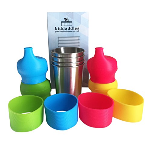 -. Title : Kiddadles Stainless Steel Cups with Silicone Sippy Lids and Sleeves for Infant, Toddlers, Babies, Kids - Pack of 4 Cups, 8oz - BPA Free, Reusable, Spill Proof & Indestructible