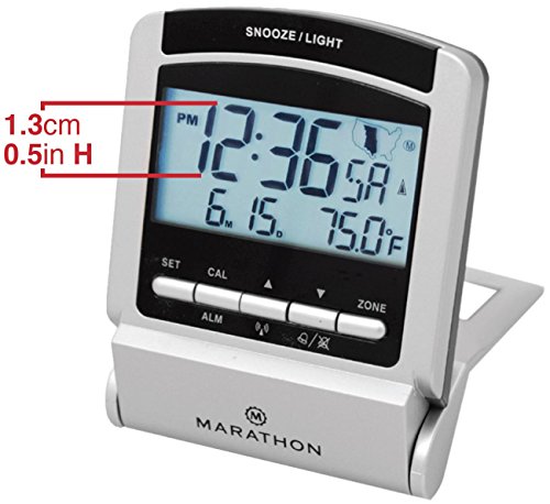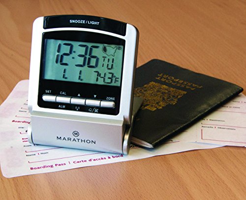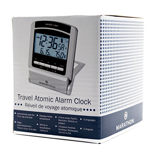 MARATHON CL030035 Travel Atomic Alarm Clock with 4 Time Zones, 5 Languages & Travel Pouch - Batteries Included