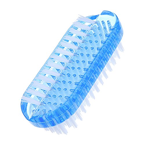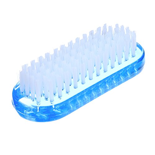 Two sided nail brush: the plastic nail brush has angled bristles on one side for cleaning under the nails and bristles on other side for cleaning hands and top of nails