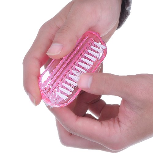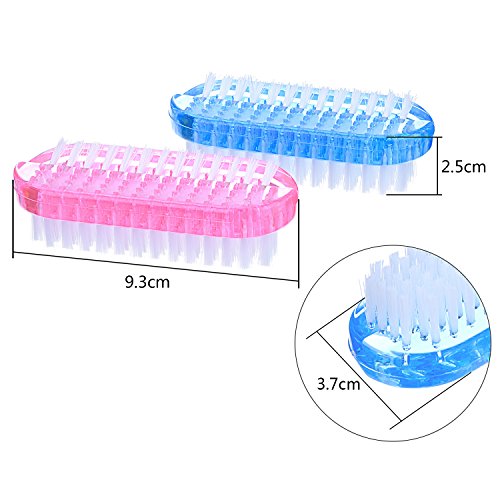 Hand nail brush: the nail brush size is 9.3 x 3.7 x 2.5 cm; 2 Pieces nail brushes in 2 crystal colors, pink and blue; These nail brushes are made from plastic and polypropylene