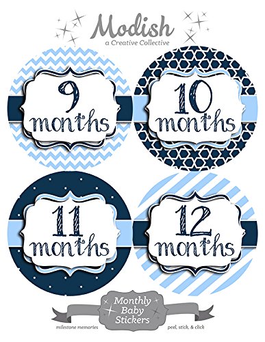 -. Title : 12 Monthly Baby Stickers, Baby Boy, New Baby Gift, Baby Shower Gift, Baby Book Keepsake, Baby Blue, Navy Blue, Nursery Decor