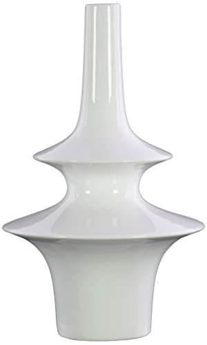 Urban Trends Stoneware Bellied Round Vase with Small Mouth, Long Neck and 2 Tier Design Body LG Gloss Finish White