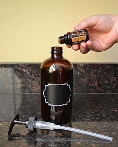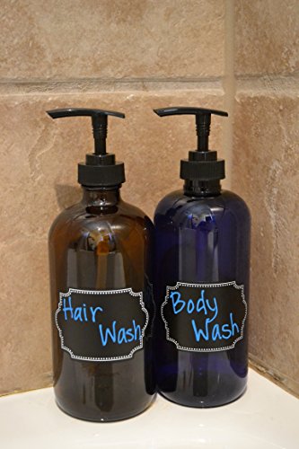 EASY to use black ergonomic pump nozzle has a textured base that makes it easy to tighten and loosen when adding liquid or cleaning it for a new use. Beautiful decorative chalkboard labels make keeping track of your products a cinch! Use permanent metallic markers for best results.