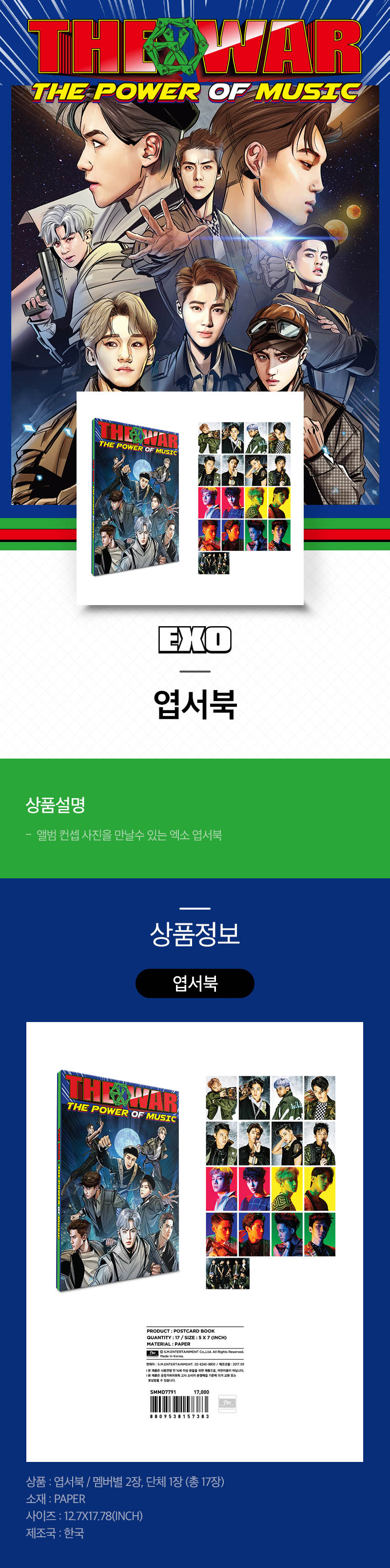 SM Town EXO THE WAR Repackage The Power Of Music Official Postcard Book