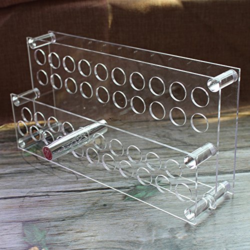 Transparent Acrylic Lipstick Organizer can make you to quickly see everything in the container, save you more time, it's ideal for storing, organizing,and displaying your lipstick,liquid lipsticks,lipsense,lip gloss and more. (NOTE:this lipstick organizer fits any round slim lip gloss/liquid lipstick, does not recommend squares or wide lipstick)