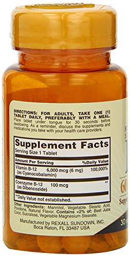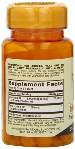 -. Title : Sundown Naturals Sublingual B-12 6000 Mcg Tablets, 60 Count
