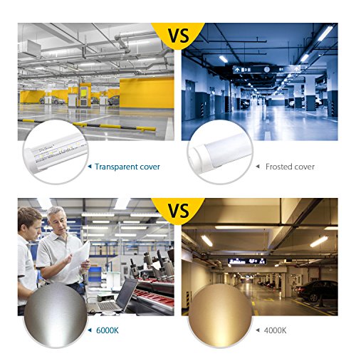 - Super Bright & Cleaner Light: Come on quickly and reliably, 2000Lm, 6000K crystal white(clear cover), perfect for place where you need lots of light, such as workshop basement garage barn.