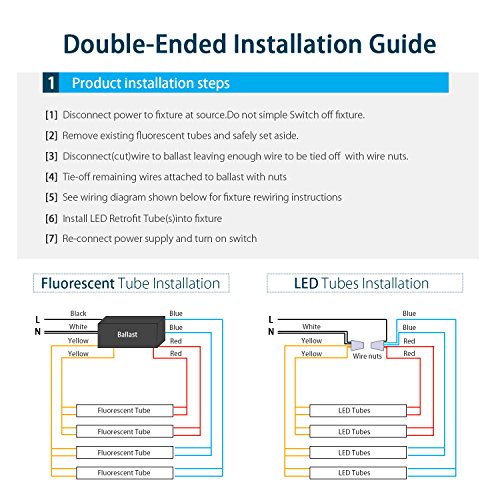 - Dual-End Powered for Easier Installation: Easier to install compared to single ended version since you can can reuse the existing tombstones on your fluorescent lighting fixtures and no need to change the socket.(Detailed instruction for bypassing the ballast is included.)