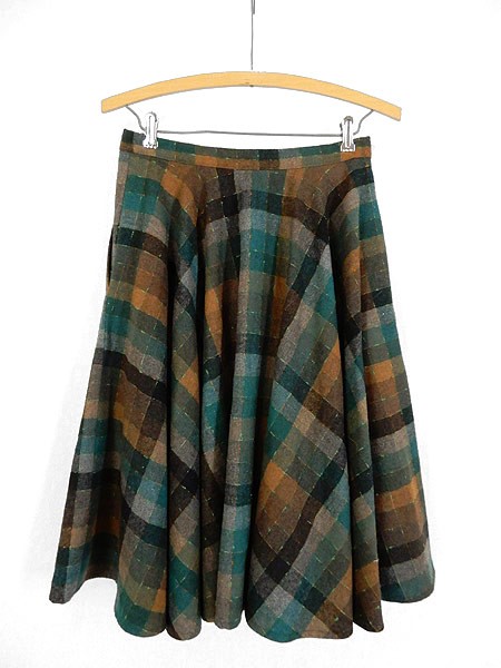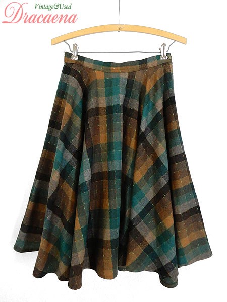 Ladies ブランド カラー多色 メール便不可 コンディション★★★ 素材表記はありませんが、ウールかと思われます。 表記サイズ記載なし スタッフコメントたっぷりと生地を使用したサーキュラースカートです。 サイドウエストボタンの所に、ポケットがついています。 実寸サイズ 着丈 63 cm ウエスト 27.5 インチ( 70 cm) ※ウエスト・ヒップ以外は平置き採寸