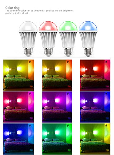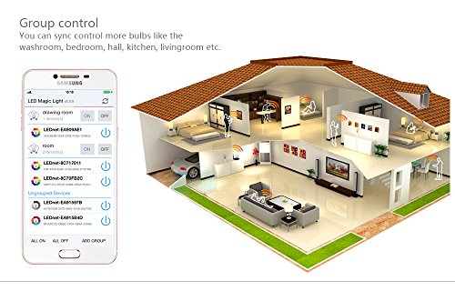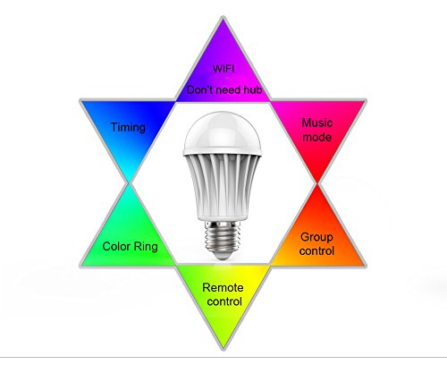 5.Easy And Efficient:This bulb doesn't need a hub,easy to install and use.Install the bulb in E27 socket holder,download free APP "Magic Home WiFi",link it step by step.20,000 hrs life time and equivalent to 50W traditional incandescent bulb.You can save money while using and looking so cool!