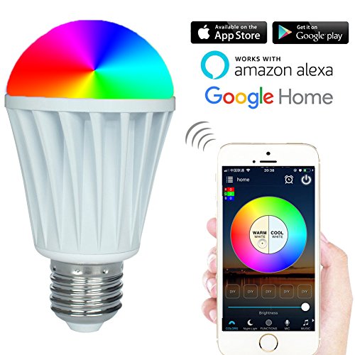 RGBW Warm White 7W Smart WiFi LED Light Bulb Work With Amazon Alexa Google Home Assistant,AC 85-265 V Smartphone APP Magic Home WiFi Controlled Dimmable Multicolored Color Changing 60W Equivalent