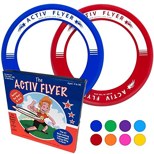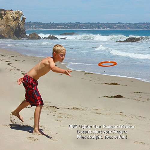 DOES THIS HAPPEN TO YOU? ? You jam your thumb or fingers because your frisbee is too heavy? ? Your kids get frustrated because your disc is hard to throw straight or catch? ? You have to chase your frisby or Aerobie all over the place because it flies off target or too far? ? You lose your flyer in the ocean or lake because it doesn't float? WE HAVE THE SOLUTION FOR YOU! As seen on ABC, NCB, CBS and FOX News, Activ Life brings you the perfect toy for any activity, any time of year. ? At 33g, it's 80% lighter than popular 175g models, which means safer and more comfortable catches. ? Our ring is easy to catch with 1 hand, even by young children. ? Perfect for distances of 15-30 feet, but can soar up to 80 feet on calm days and indoors. ? Easy to throw accurately. Perfect to use for numerous games. ? Floats in water, so easy to rescue from the pool, ocean or lake. Great beach toys too!