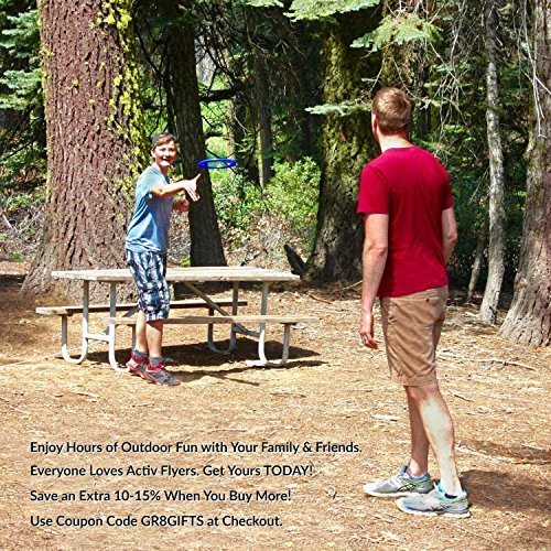 KIDS LOVE ACTIV FLYERS! A perfect birthday gift or Christmas present for boys and girls of all ages! Keep extras at home, the office, car and in your backpack for instant fun wherever you are. For a LIMITED TIME, you'll also get our FREE E-BOOK when you purchase your Activ Flyers to learn fun, exciting games to play such as Ultimate Disc, Frisbee Golf, Kan Jam, etc. It's of utmost importance to us that you are happy with our toys. That's why we have a 90-day FULL MONEY BACK GUARANTEE. And if you place your refund request within 30 days, Amazon will even pay your return shipping. ORDER OUR TOP SELLING FLYING RINGS NOW So You Can Start Playing Right Away! ORDER 2 OR MORE AND SAVE USING COUPON CODE GR8GIFTS AT CHECKOUT. SURPRISE YOUR FRIENDS AND FAMILY! THEY'LL LOVE YOU FOR IT! 0 |