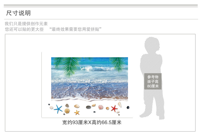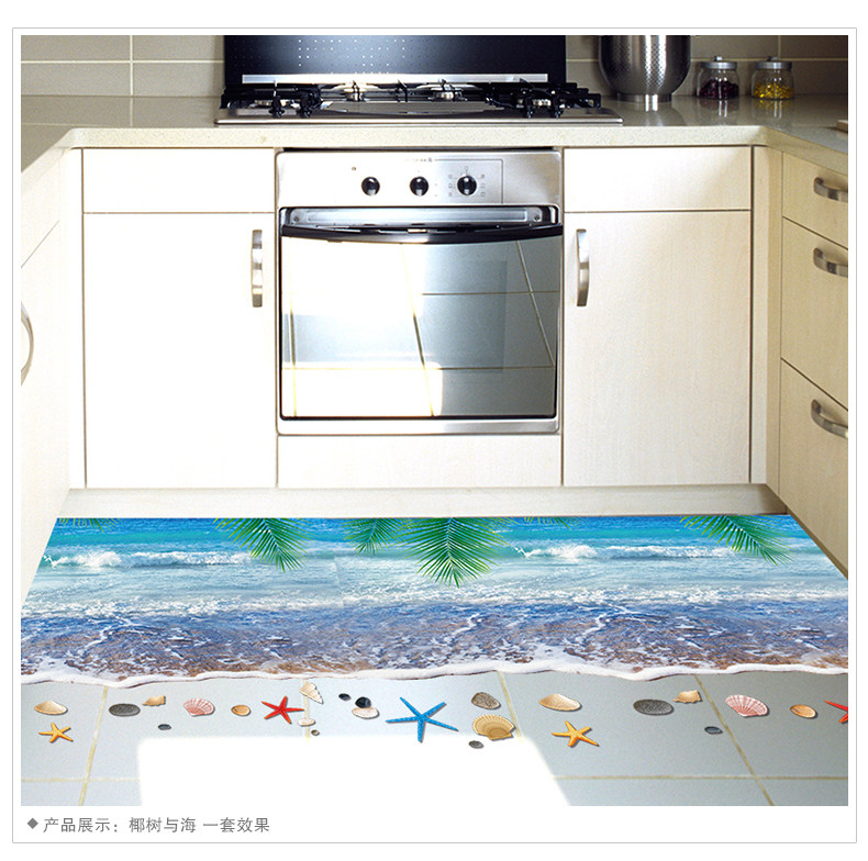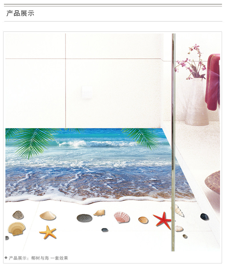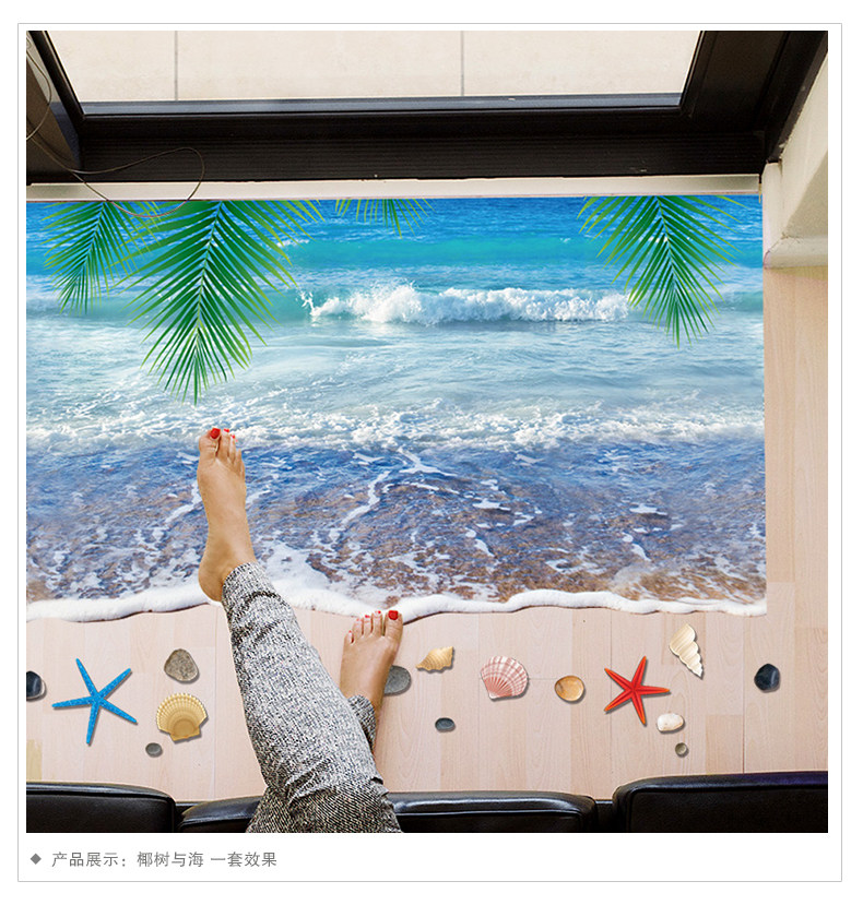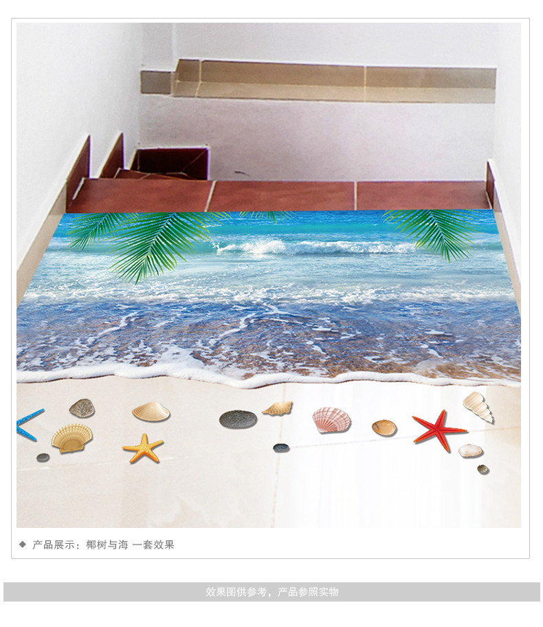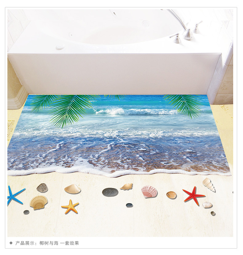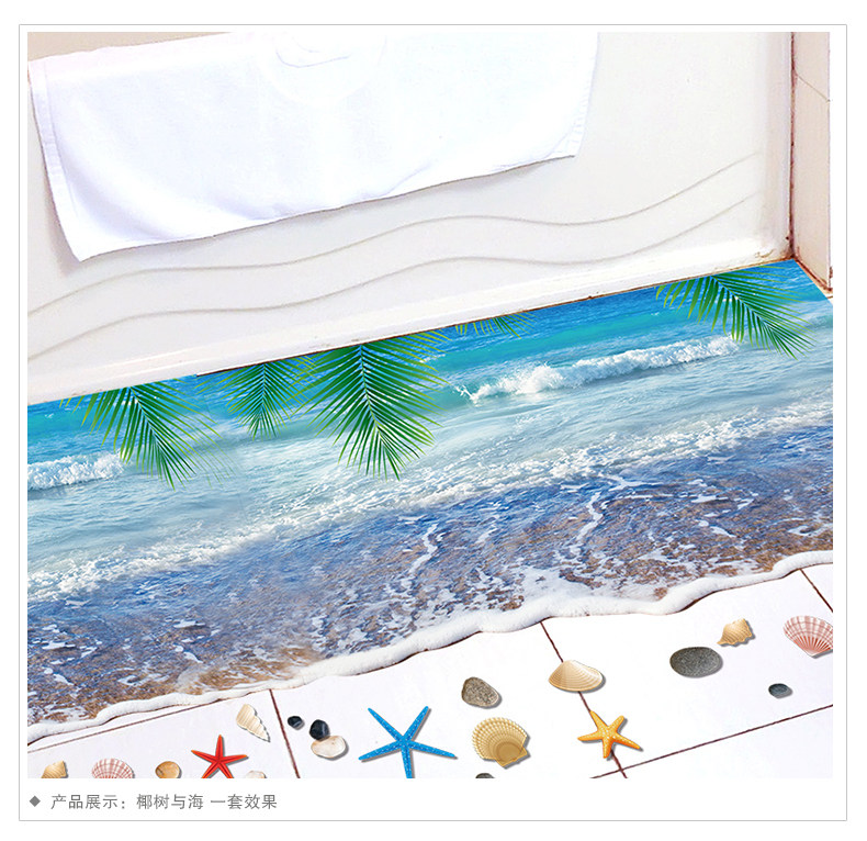 3D仿真海滩沙滩风景走廊门口地面装饰品地板墙贴纸贴画卫生间浴室