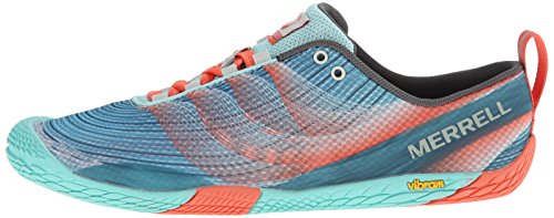 Barefoot-style trail runner in mesh and TPU with traditional lace closure, breathable mesh lining, and integrated microfiber soft footbed