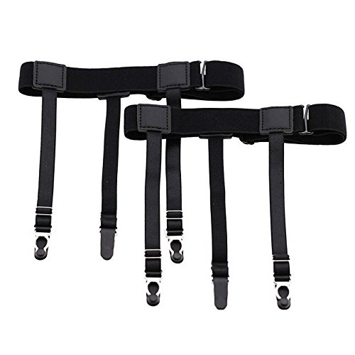 Description: 1.Adjustable and elastic, fit for the most people 2.Shirt stays, keep your shirt in place and with crease-resistance. it is elastic and adjustable. 3.Easy to use, just attach the double clips to your shirt tail while the loop slips over each foot Material:70% polyester fiber 20% rubber band 10% PU Color:Black Size:10*17.5*2cm,50*2.5cm Function: Prevent the shirt from sliding out and prevent socks from falling off Package Includes: 1 x Pair of Suspenders