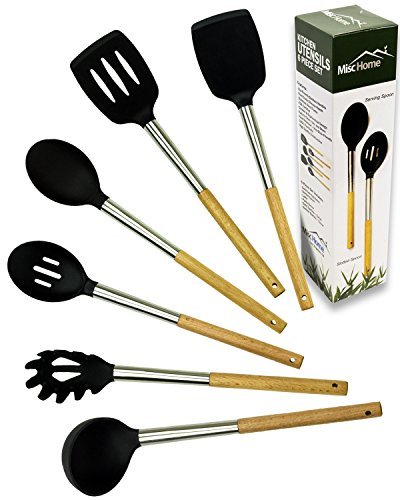 -. Title : +Gourmet+ 6 Pcs Eco-Friendly Bamboo Stainless Steel Silicone Kitchen Utensil Set Premium Non-Stick Silicone Cooking Tool Set [Black] by Misc Home