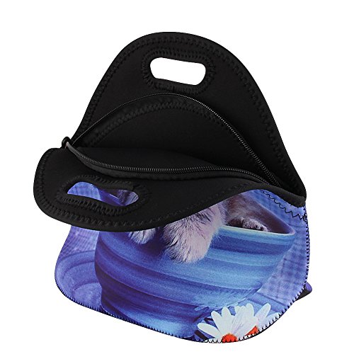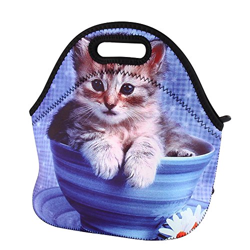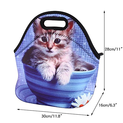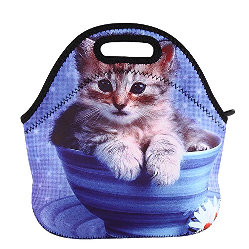 TOPCHANCES Children's Lunch Bag Insulated Lunch Boxes Recycled Insulated Thermal Cooler Storage Container Picnic Tote Lunch Box (Cat in Bowl)