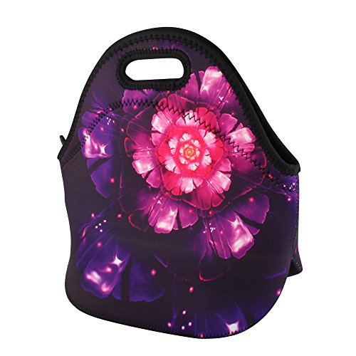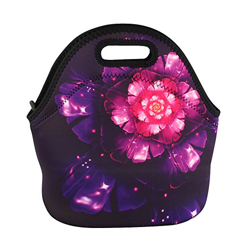 TOPCHANCES Children's Lunch Bag Insulated Lunch Boxes Recycled Insulated Thermal Cooler Storage Container Picnic Tote Lunch Box (Purple Flower)