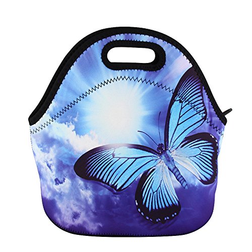 TOPCHANCES Children's Lunch Bag Insulated Lunch Boxes Recycled Insulated Thermal Cooler Storage Container Picnic Tote Lunch Box (Butterfly)