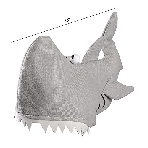 This Plush Grey Shark Novelty Hat Featuring a Full Length Fish with Bulging Eyes and Foam Teeth is a Must for any Ocean or Fish Theme Party
