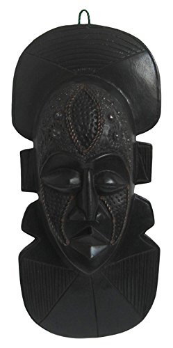 NOVICA Decorative Large Sese Wood, Brass and Copper Mask, Black, 'Protector From Sorcerers'