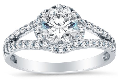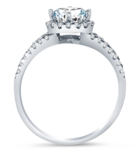 - Title : Solid 14k White Gold Highest Quality CZ Cubic Zirconia Halo Engagement Ring - Round Brilliant Cut Solitaire with Round Side Stones (2.0cttw., 1.5ct. Center) - Available in all ring sizes 4 - 13