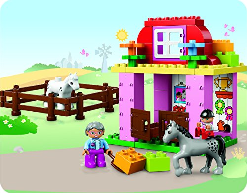 -. Feature : Enthält 2 L.E.G.O DUPLO Figuren: Großmutter und kleines Mädchen / Mit Pferd und Fohlen, rosa Scheune und Zaun / Die Scheune enthält Türen zum Öffnen, ein Dach mit Fenster und abnehmbare Tapeten / Heugabel, Heuballen-Steine, Blumen und besondere Elemente als Zubehör enthalten / Niedliche Tiere fördern stundenlangen, kreativen Rollenspielspaß