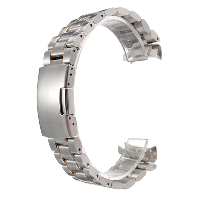 YCYS-20mm 스테인레스 스틸 팔찌 시계 밴드 스트랩 사이드 푸시 버튼 버클 골드 & 실버