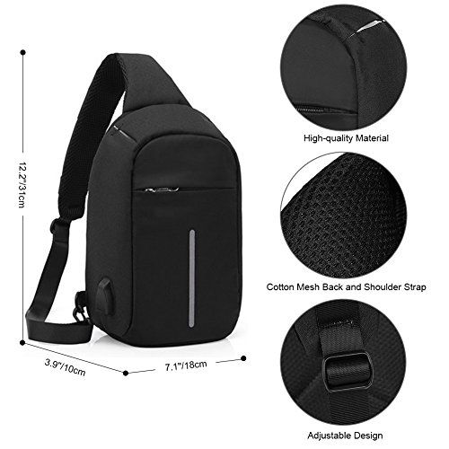 Product Description Information Just carry this Vbiger fashionable sling bag to enjoy shopping, hiking, climbing and other activities! ? You must need a small-sized and lightweight bag to hold your belongs like cell phone, wallet, credit card and earphone, and this one will meet your demands! Also, we have adopted high-quality material to offer a waterproof and wear-resistant bag for you. ? If you want to know more details or have any questions, please look through the detailed page or contact the customer service. Features Material: nylon Gender: unisex Type: sling bag; shoulder bag; crossbody bag Size:?length 7.1'/18cm; width 3.9'/10cm; height 12.2'/31cm Internal?structure: 1* main compartment; 1* interlayer pocket; 1* zipper pocket Color: black Package list: 1*?sling bag; 1* USB cable Notice * The actual color may vary slightly from the online image due to monitor color settings. * Please allow slight measurement deviation for the data. Package Including -1x sling bag -1x USB cable 0
