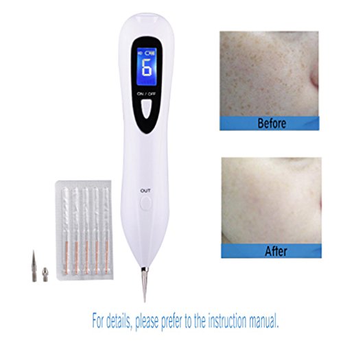 -. Feature : ADOPTED MICROCOMPUTER CONTROL: which is safe, fast and convenient,stainless steel spot pen is non-toxic, hygienic, uneasy to rust for a secure use,How to manipulate video:http://v.youku.com/v_show/id_XMjY4MTQ1ODE0NA==.html?sharefrom=iphone&qq-pf-to=pcqq.c2c / INTELLIGENT PROCESSING: using 6 gears adjustable scan spot power output for reliable treatment,unique electric ion carbonation function, which can effectively sweep freckles instantly, senile plaques, flat moles etc. It has no bleeding in the using, no side effects after using / BUILT-IN RECHARGEABLE BATTERY: it's more convenient to carry and use, plus you can use more than five hours one time,the device should be battery charging every 3-4 months if not use for long time. / LCD DISPLAY: shows how much power it is and the levels of gear, which is very clear to read either of them / KINDLY REMINDER: you'd better be in 2-3 days before wound healing nourishing cream coated with a small living cells, it can prevent skin concave hoe. When wiping nutrition frost, should pay attention to the wound with inflammation of the situation, it's not to wipe