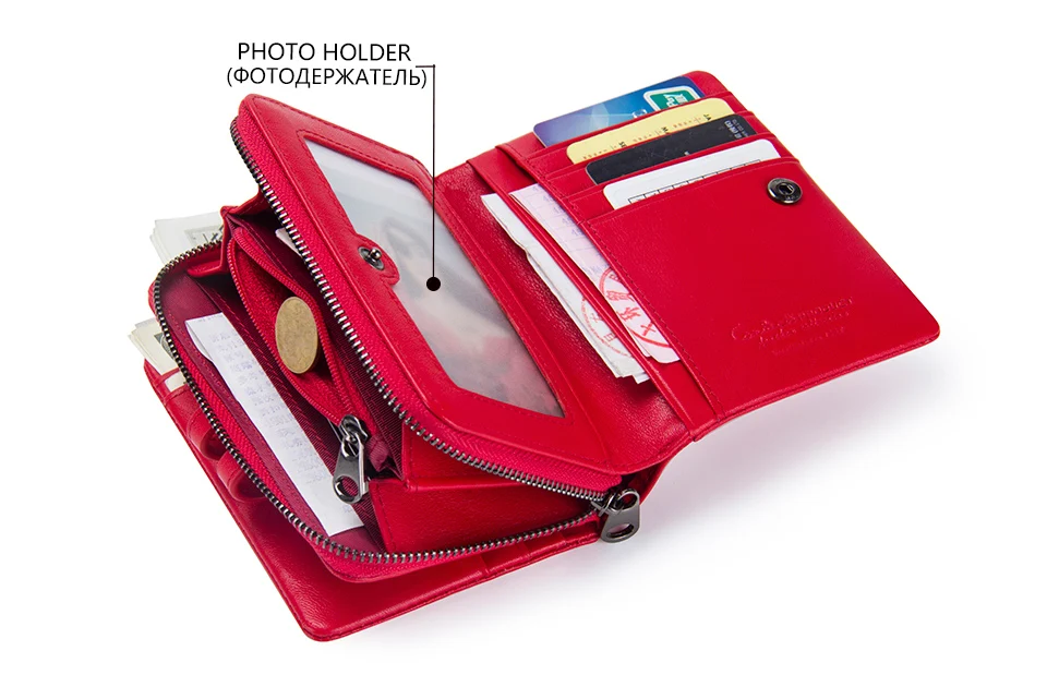 Interior:Photo Holder,Interior Zipper Pocket,Zipper Poucht,Coin Pocket,Interior Compartment,Interior Slot Pocket,Note Compartment,Card Holder