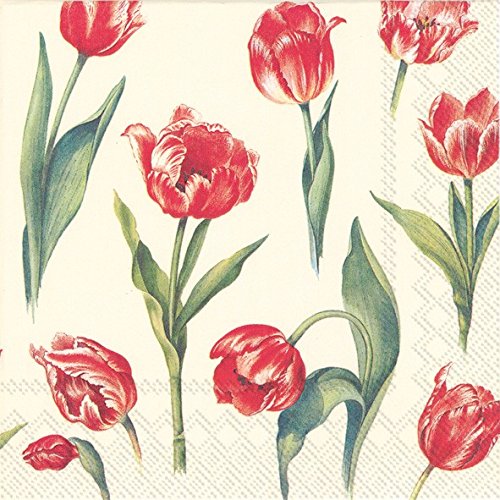 Boston International 20 Count 3-Ply Paper Lunch Napkins, Red Tulips