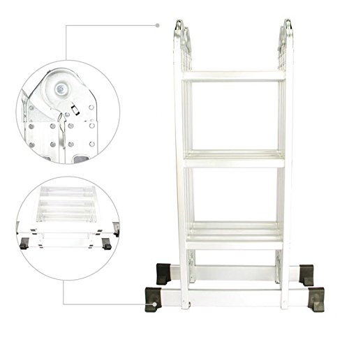 - Feature : 12.5 feet Multi-purpose aluminum folding ladder,durable and lightweight / Extra thick All-rustproof aluminum alloy construction.Built for a maximum load of 330 lbs/150kg EN131 / It is great for getting all types of tasks done around the house or as business use ladder / Use it to access your roof or balcony, clean your windows, get interior and exterior painting and decorating done / Can be used as a telescoping ladder, twin stepladder, stairway stepladder, two scaffold bases,temporary bridge or at construction