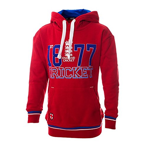 Studio : England Cricket Publisher : England Cricket Product Description Cozy junior England supporters hoody with a soft brushed fleece lining. Stretchable cuffs and rim with blue and white trim. Kangaroo pocket to the front with a subtly embroidered St George's shield and white stitching. Large felt and print combined 'Est 1877 England Cricket' logo on the chest. Blue contrast hooded lining with a thick draw cord through brushed steel eyelets. 0