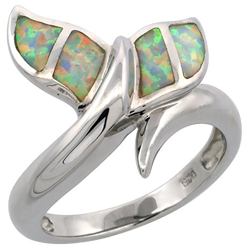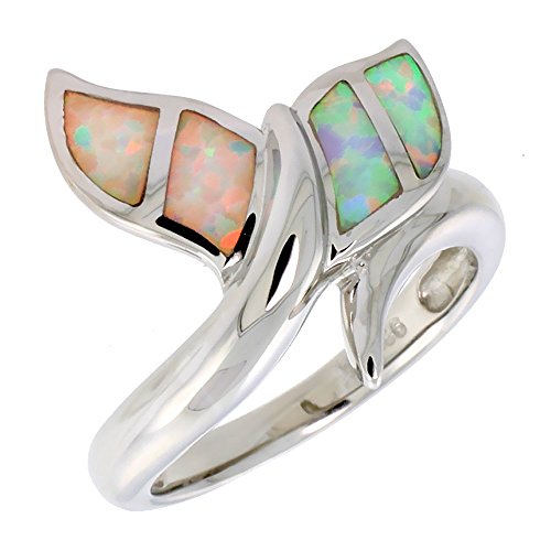 -. Title : Sterling Silver Synthetic Opal Inlay Whale Tail Ring, 3/4 inch wide