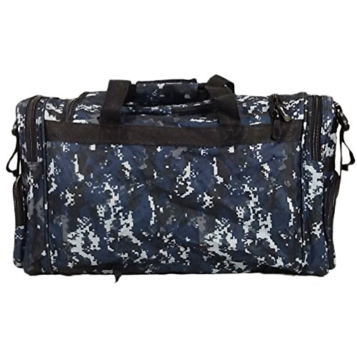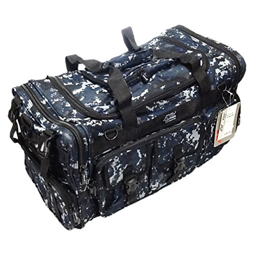 -. Feature : Perfect as a carry-on bag for outdoor activity! / DMBK (Digital Camouflage, Navy blue), Tactical style duffel bag with hidden shoulder straps (in case, used as a backpack) / Capacity: 3800 cu. in. / Size: 26"(Width) x 13"(Height) x 11"(Depth) / MOLLE style straps, Heavy duty U-zipper