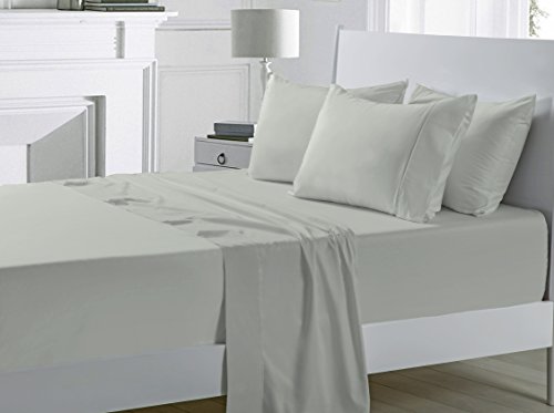 400 Thread Count Sheet Set, 100% Long-staple Cotton Silver Queen Sheets, Sateen Weave Bedsheets, Stylish 4-inch hem, upto 17 inch Deep Pocket by Pizuna Linens (100% Cotton Sheet Set Silver Queen)