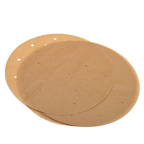 Perfect for Air Fryers and Bamboo Steamers Fits 5.3 quart air fryers and 10" Bamboo Steamer. Unbleached, Non-toxic, and Greaseproof Zenlogy 9" perforated rounds are unbleached so bleaching chemicals do not leak into your foods. Our non-toxic vegetable silicone based coating allows high heat baking and is greaseproof. Easy to use Zenlogy 9" perforated rounds are grease proof and cleanup is fast and convenient. Protects the Air Fryer basket and bamboo steamer so you can prolong your use of the basket. We do recommend putting them after the pre heat process in the air fryer. Pack of 100 comes in a perforated eco friendly box so storage is easy and convenient. 0