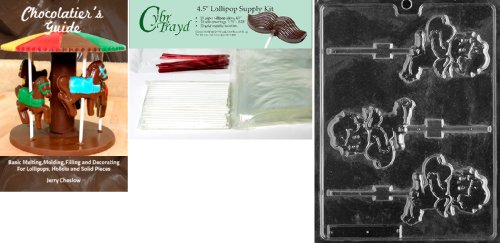 Cybrtrayd 45StK25RBk-XX575 Flying High Cupid Lolly Chocolate Candy Mold with Chocolatier's Bundle, Includes 25 Lollipop Sticks, 25 Cello Bags, 25 Red Twist Ties and Chocolatier's Guide