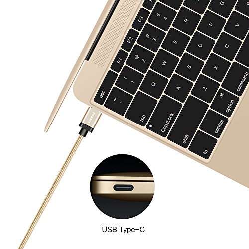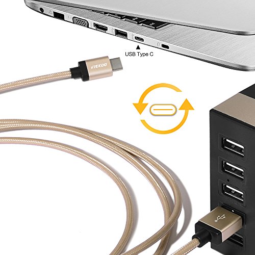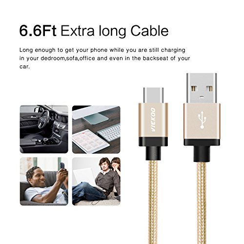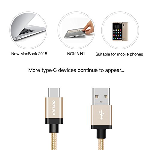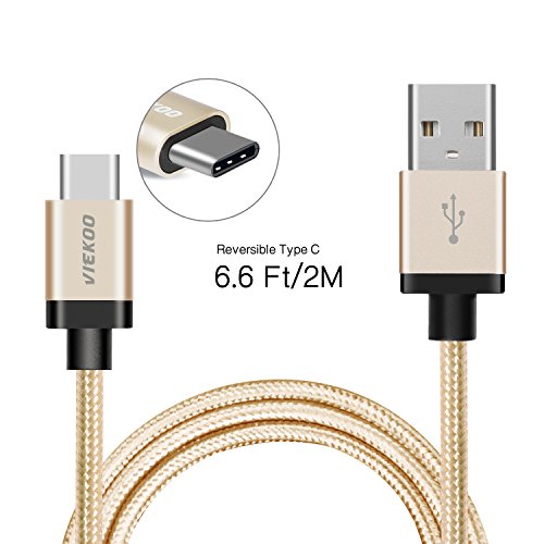 USB Type C to 2.0 USB Male Cable, VIEKOO 6.6Ft(2M) Nylon Braided Cable with Reversible Connector USB Charger for New Macbook 12 inch, ChromeBook Pixel,Lumia 950,Nokia N1 Tablet and Other Devices, Gold