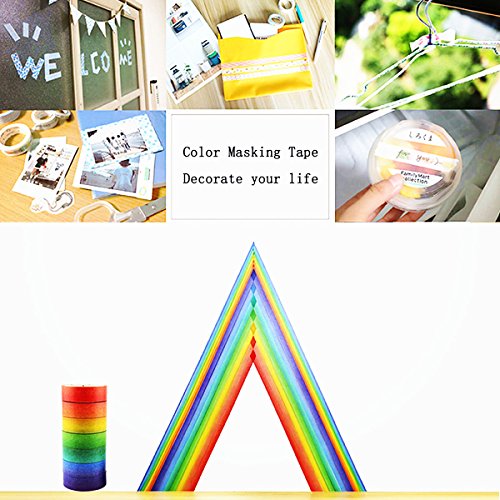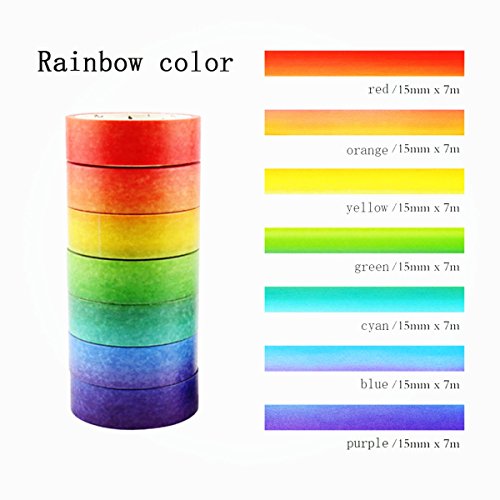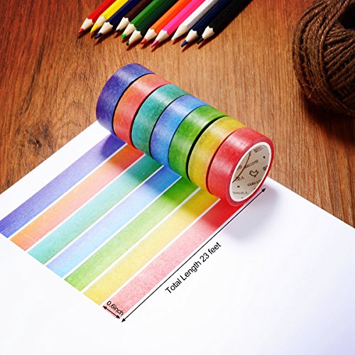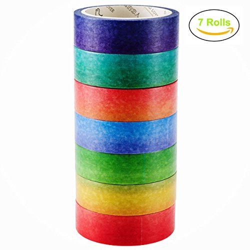 Hompie Colored Masking Tape (7 Rainbow Colors, 23FT) for DIY Arts and Crafts (7 Rolls), suitable for Halloween, Thanksgiving Day and Christmas Decoration, Gift Wrapping