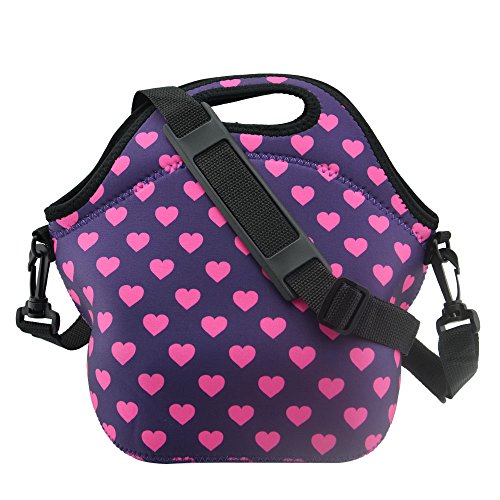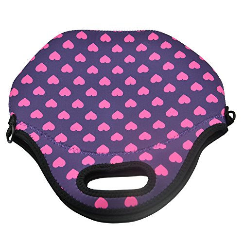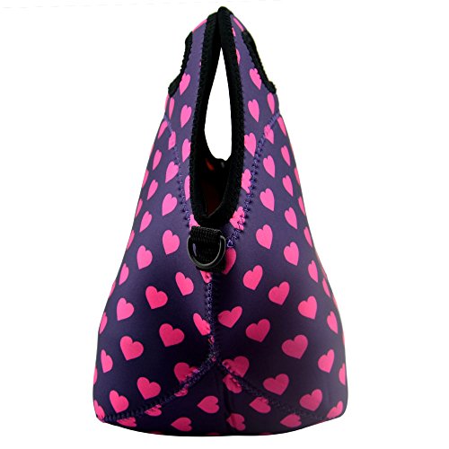 Blue ELF Neoprene Lunch Bag Tote Handbag Lunchbox Food Container Gourmet Tote Cooler warm Pouch with Heavy-Duty Shoulder Strap For School and Work Office (heart)
