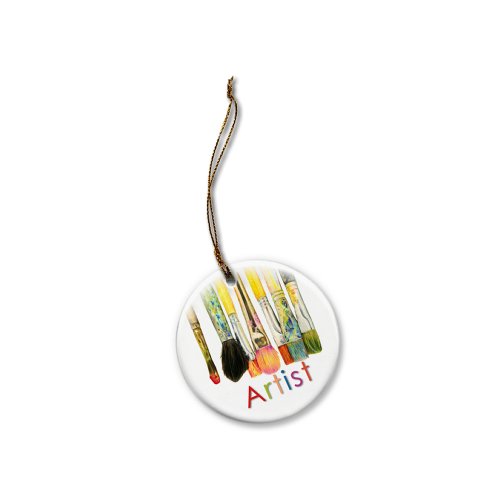 -. Title : Artist Paint Brushes Original Art By Tracey 2 7/8 Inch Ceramic Hanging Ornament